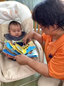 0歳児のお友だちも次々と飛び出してくるはたらく車に興味を持ち、自分から絵本に触れて見たり見終わった後は満足そうに最高の笑顔を見せてくれました