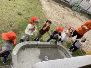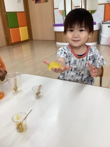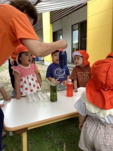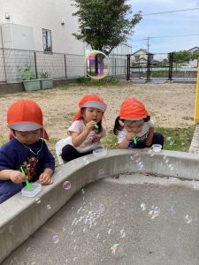 楽しい夏の遊びを楽しみながら科学の目もしっかり育っている境港園の子どもたちです