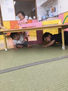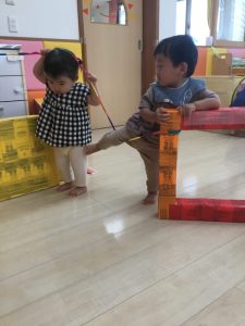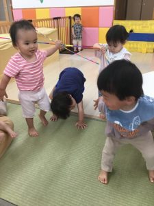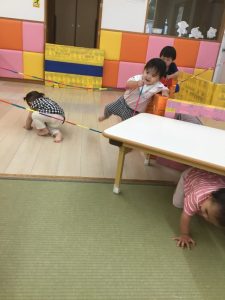 水遊びが出来ない時は保育室で、夏の遊びや目新しい教材を使っての遊びにとても盛り上がっている子どもたちです
