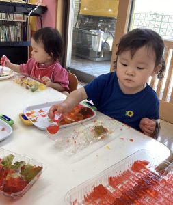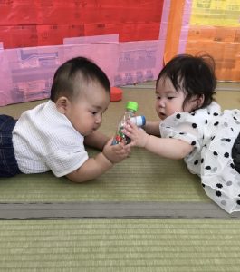 6月、7月入所のお友だちはすっかり保育園生活に慣れて、お友だちや先生と関わりながら笑顔で遊べるようになりました。8月入所のお友だちも、涙が出る時もありますが、徐々に保育園生活やお友だち、先生に慣れて来てニコッと可愛い笑顔を見せてくれる様になってきました![]()