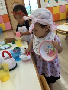 6月〜8月に入所して来た新しいお友だちが少しずつ園生活に慣れ遊んでいる様子をお伝えしたいと思います![]()