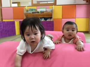 4月は13名でのスタートで少し寂しかったのですが、6月には1歳児さんが1名、7月には0歳児さんが2名と1歳児さんが1名仲間入りして17名となり賑やかになって来たと喜んでいたら8月には更に0歳児さんが2名入所して来てくださって総勢19名になり一気に活気付いて来ました![]()