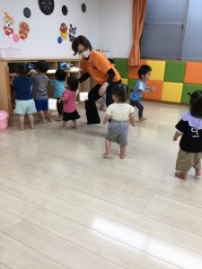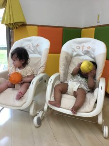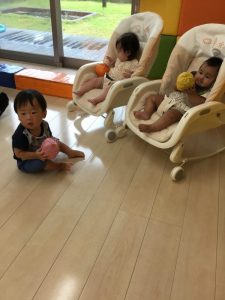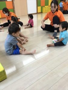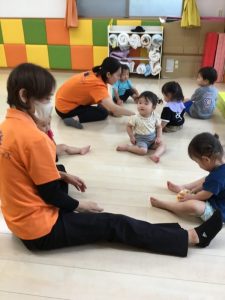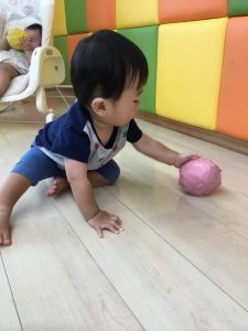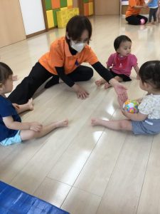 動けるお友だちは自分でボールを転がして取りに行っていましたよ。
