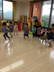 サンライズキッズ境港園は、英語・リトミック・体操・フラッシュカード・絵本の読み合いなど、育脳活動に取り組んでいる保育園です