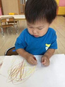 「クレヨンでぐるぐる🌀、おもしろ〜い