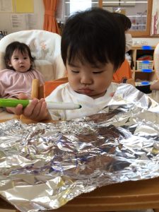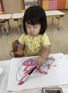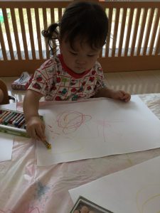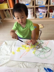 「クレヨンの上は色が付かないなぁ〜🤔」