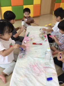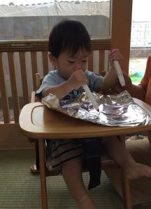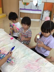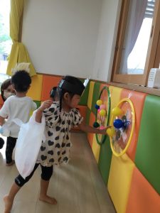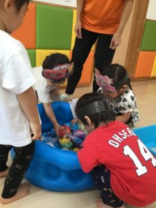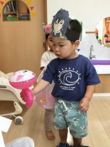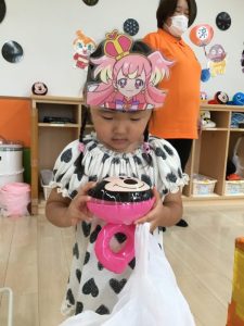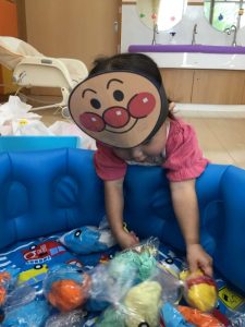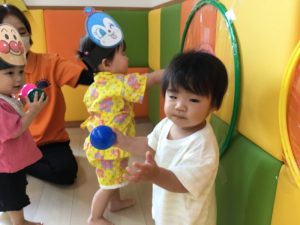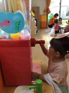 当日、体調が優れず欠席のお友だちもいましたが、納涼祭を満喫した子どもたちは、その日、お家の方がお迎えに来られるとたくさんのお土産を「ほら、見て〜」と嬉しそうに見せていました。子どもたちの嬉しそうに話す姿を見てほっこりあたたかい気持ちになりました