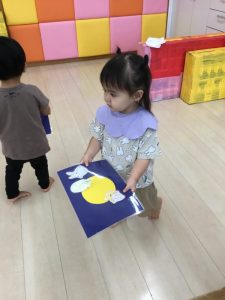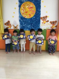 十五夜の由来を聞いたり絵本を読んでもらったり、みんなで十五夜アートを作ったりと楽しく過ごしましたので、その様子を見てください![]()