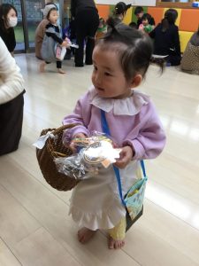 スタンプラリーでダミーのお菓子を集めた子どもたちは、大好きな園長先生から本物のお菓子セットが貰えて、サイコ〜に可愛い笑顔を見せてくれました![]()