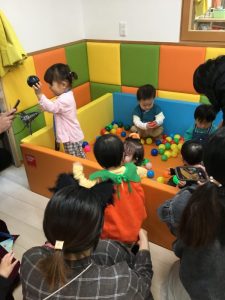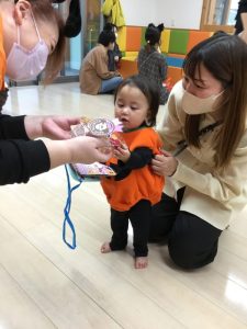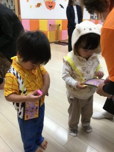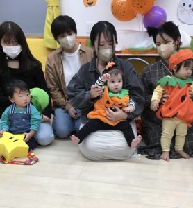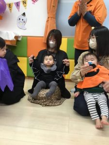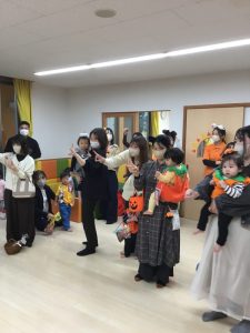 ハロウィン会が始まったばかりの時は、緊張した表情の保護者様も会が進むにつれ、近くにいる保護者様との会話が弾み賑やかな会となりました![]()