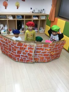 「レンガのお家もあと少しだよ