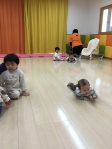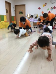 ハイハイなのでもも組さんも一緒にハイハイで参加しています😆
