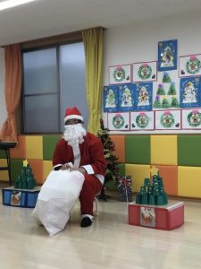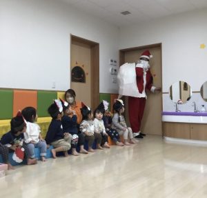 クリスマス会の日に突然現れたサンタクロースに、みんなビックリ![]()