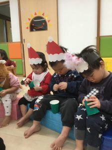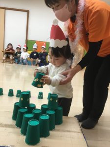 それでも中旬以降になると、子どもたちも元気に登園出来る様になり、一大イベントのクリスマス会は、みんなで楽しむ事ができました![]()