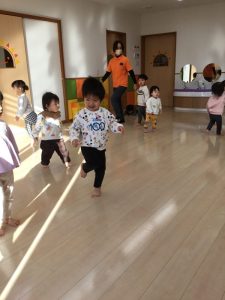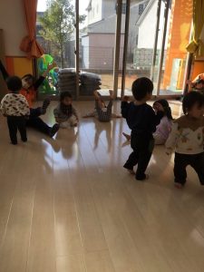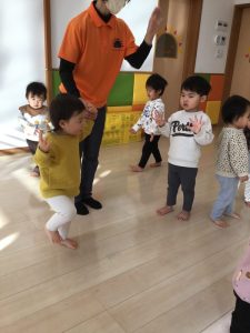 もう一つのリズム打ちは『きらきらぼし』の歌ではリズムに合わせて動いてみますよ🎶