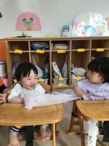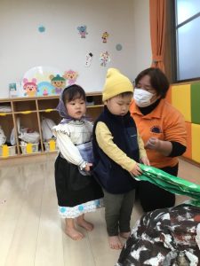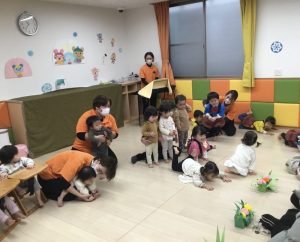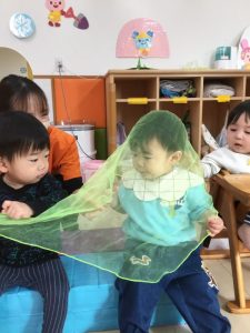 🍑もも組(0歳児)🍑〜いないいないばー、げんこつ山のたぬきさん〜(表現遊び)