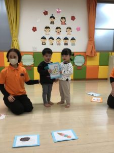境港園で最後のひな祭り会に参加するりんご組のお友だちには、ひな祭りクイズにも挑戦してもらいました![]()