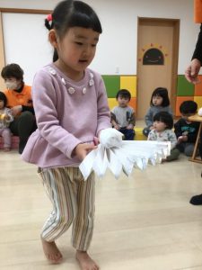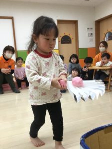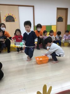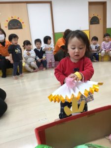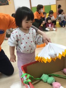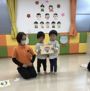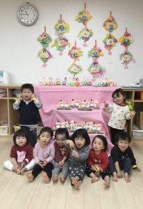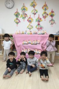 3月3日は桃の節句。境港園でも、子どもたちの健やかな成長を願って「ひな祭り会」をしました。それぞれのクラスが趣向を凝らして作った“おひなさま”を飾って、春の雰囲気一色の中で歌を歌ったり、クイズやゲームをして、ひな祭り会を楽しみました![]()