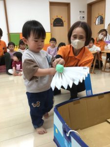 「箱の中にポトリ、大成功