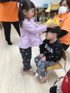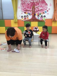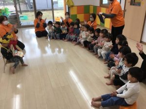 回を重ねるうちに「次はプレゼント、あげるんだよねぇ〜」と手を挙げる準備をしたり「今日は何先生からのプレゼント❓」と先生たちからの出し物プレゼントを楽しみにしたりするようになって来ました![]()