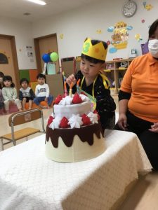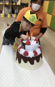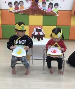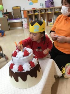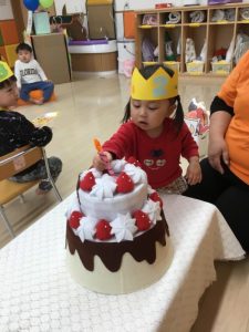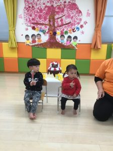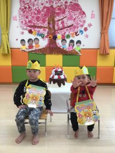 首を長〜くして待っていた3月生まれのお友だちの誕生日会が25日にありました。今月は、男の子と女の子それぞれ1名ずつ計2名のお友だちがひとつずつ大きくなりました![]()