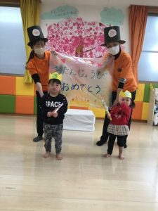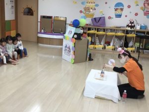 先生の出し物プレゼントのマジックショーで盛り上がる子どもたちの様子を見ながら、今年度締めくくりの誕生日会を一緒に楽しんで貰えたら嬉しいです![]()