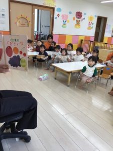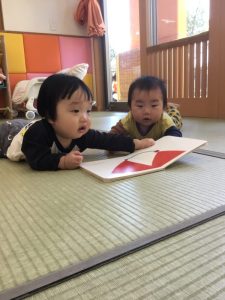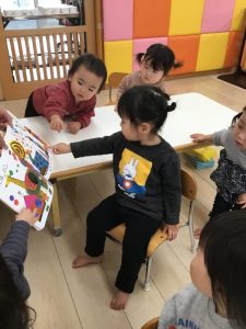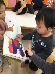 泣いたり不安なお友だちが、一瞬でも涙が止まって元気になる時間が絵本の読み合いの時間です。ひとりで夢中になって見ていたり、椅子に座ってみんなで楽しんだりしている子どもたちの様子を、今年度初めての絵本ブログでお伝えしたいと思います![]()