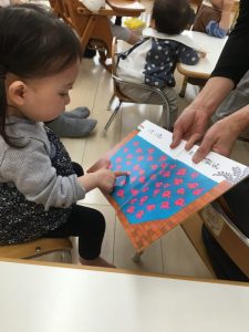 今年度、最初の絵本ブログは、もも組やいちご組のお友だちが絵本に興味を持って触れる様子や、全体での絵本の読み合いを楽しむ姿を紹介させて貰いました。りんご組のお友だちは、絵本の中のきんぎょを上手に探して大満足です![]()