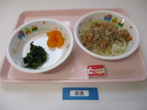 ★幼児食★ ・肉みそうどん ・ほうれん草のおひたし ・チーズ ・みかん缶 ...