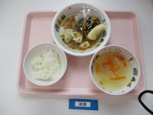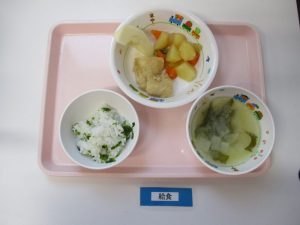 ★幼児食★ ・わかめごはん ・煮魚 ・ジャガイモの炒め煮 ・大根の味噌汁 ・りんご ★離乳食★ ・お...