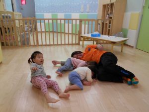 朝のおやつのあとはお歌を歌ったり体を動かして体操したり・・・