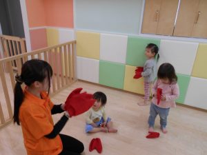 カニさんの手袋をつけて踊ってみようよ!