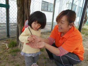 ほらほら・・ダンゴムシもいるよ~さわってみる?![]()
