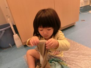 自分で足を通そうと がんばっています!