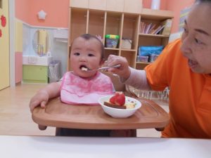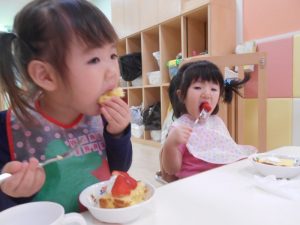 いちごがのってたので いつもよりみんなパクパク!