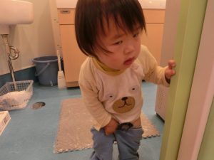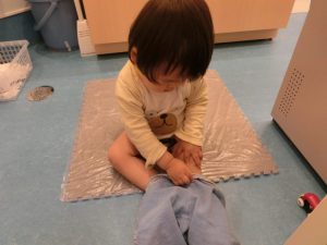 自分で足を通そうと がんばっています!