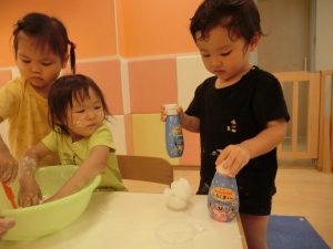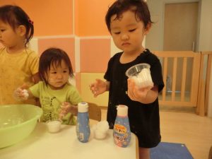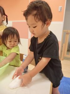 不思議な感じだけど、感触遊びって面白いね。