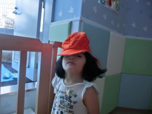 外に行く前に自分で帽子かぶれたよ!