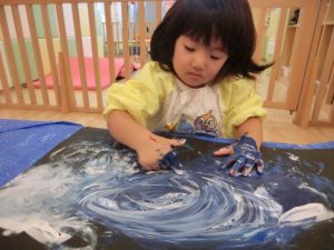 こっちではパラパラと色を張り付ける遊びが始まりましたよ![]()