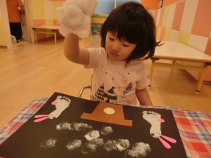 お月さまの後は、ウサギさんにもだんごを作り