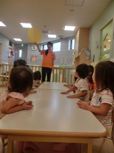 絵本のあとは先生が何かをもってきてくれました![]()