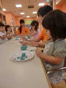 みんなでだんごを作ってお月さまにプレセントすることになりました。
