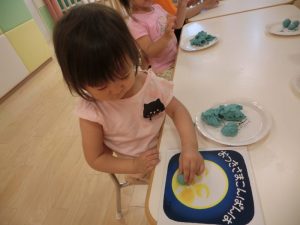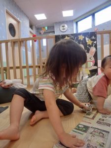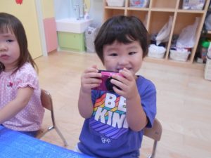 りんご組ではハサミの練習も始まっています。