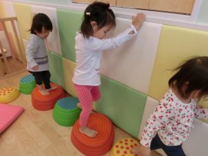 サイズや傾いている台の上を落ちないように渡れるかな?