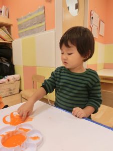 絵具やノリを指を上手に使ってぬ~りぬり