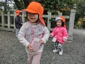 秋といえば『落ち葉拾い』や『松ぼっくり、ドングリ』などの散策![]()