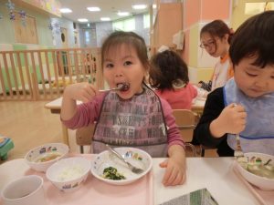 それじゃあ、ほんとの給食の時間でーす![]()
