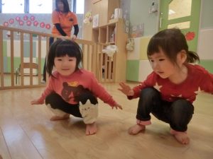 次は、アヒルさんのように歩いて~