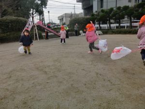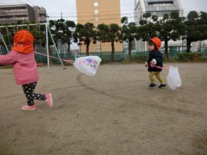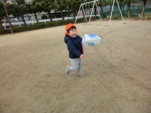 制作活動で作った凧を持ち公園へ行きました![]()