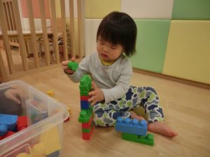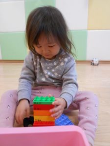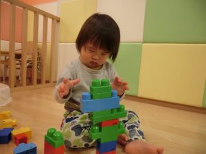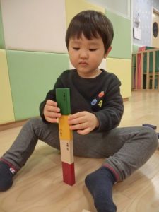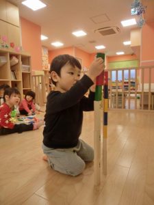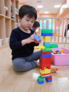 細い積み木もバランスを考え集中して積み上げ中![]()